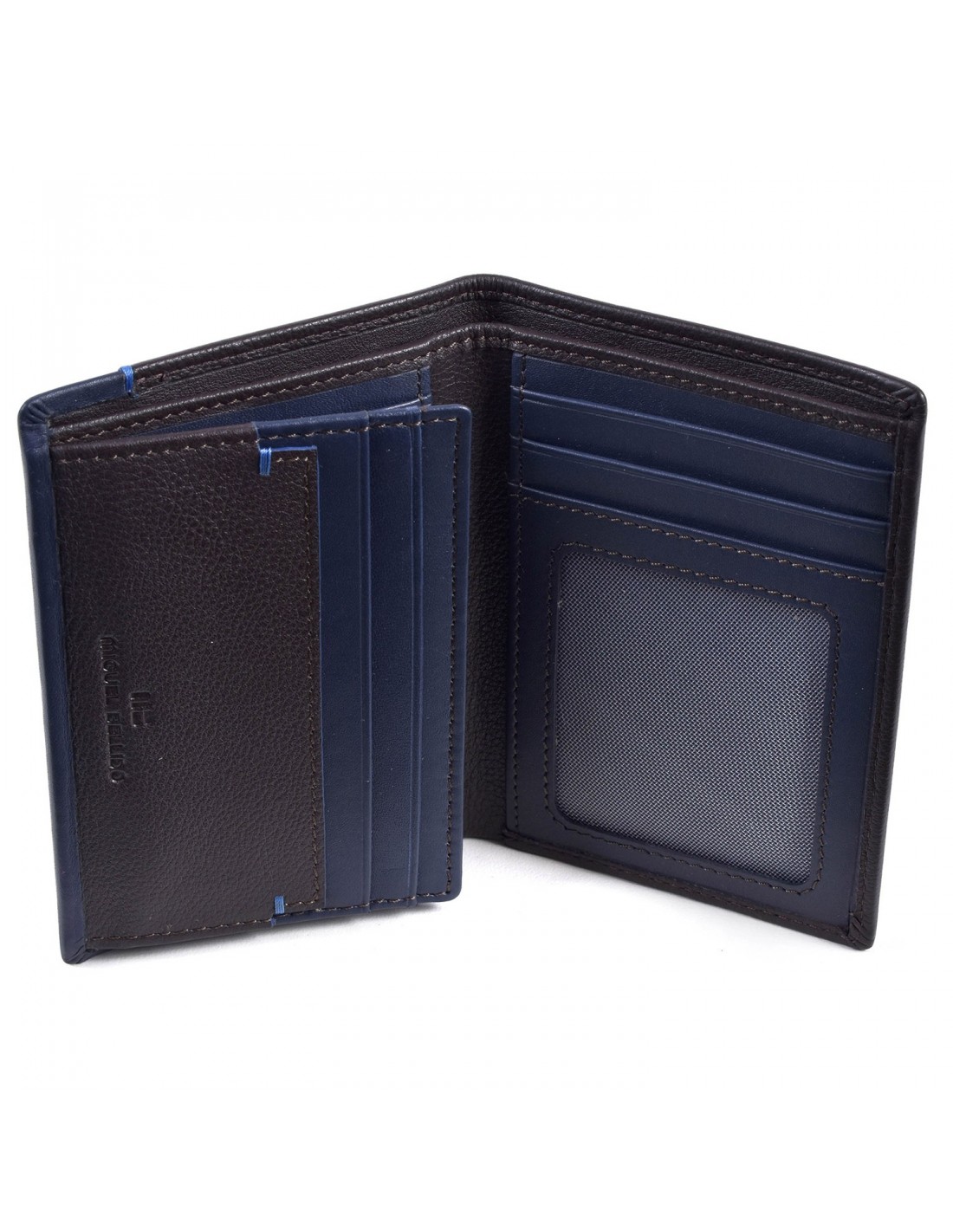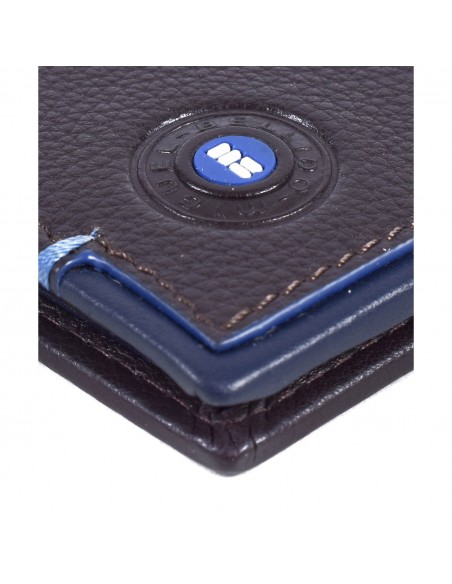 A carteira de couro de Miguel Bellido possui no seu interior um bolso para notas, um porta-cartões com 5 ranhuras e uma janela para documento de identificação.