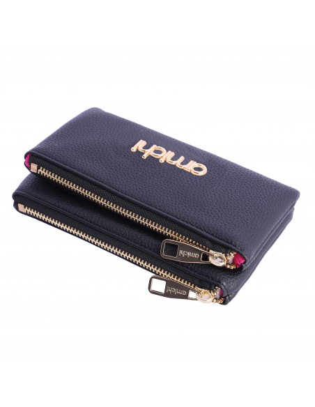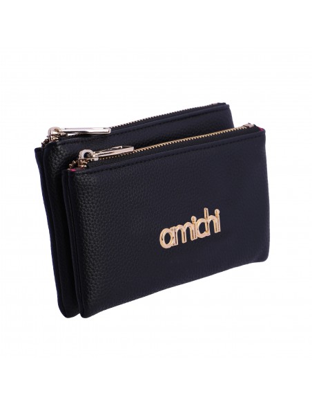Monedero Doble Compartimento Amichi, PU, NegraAmichi