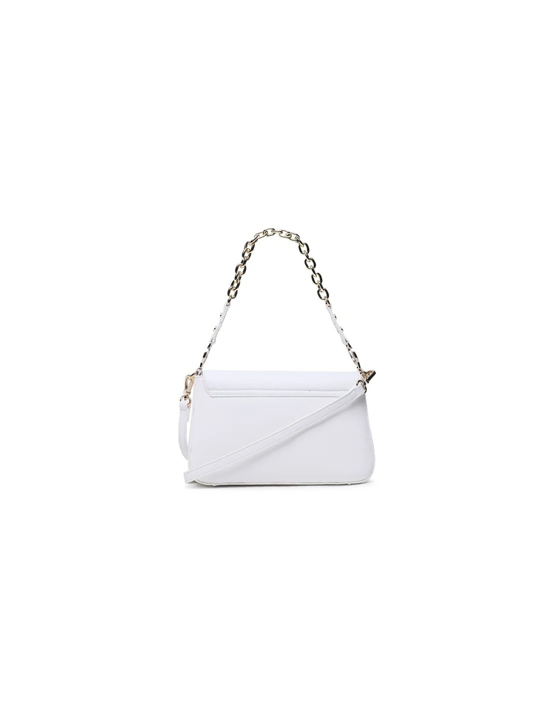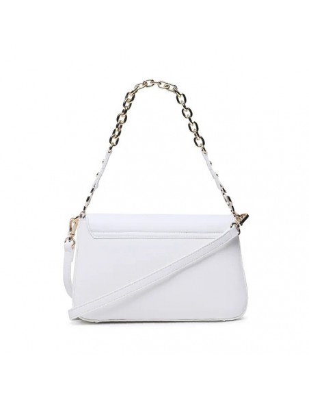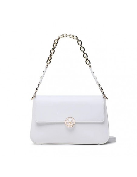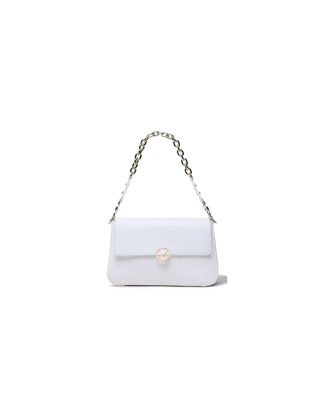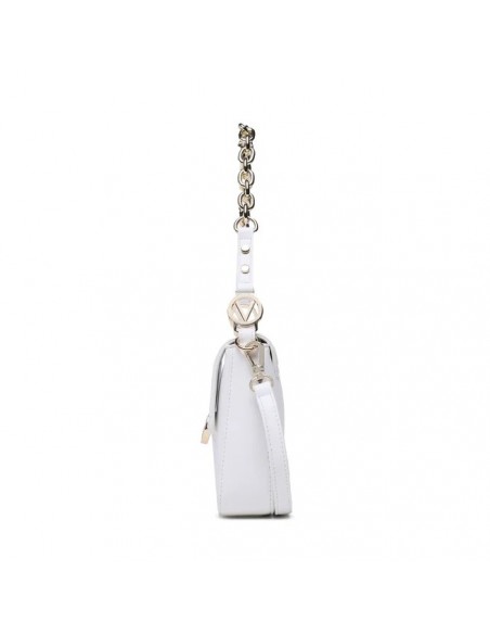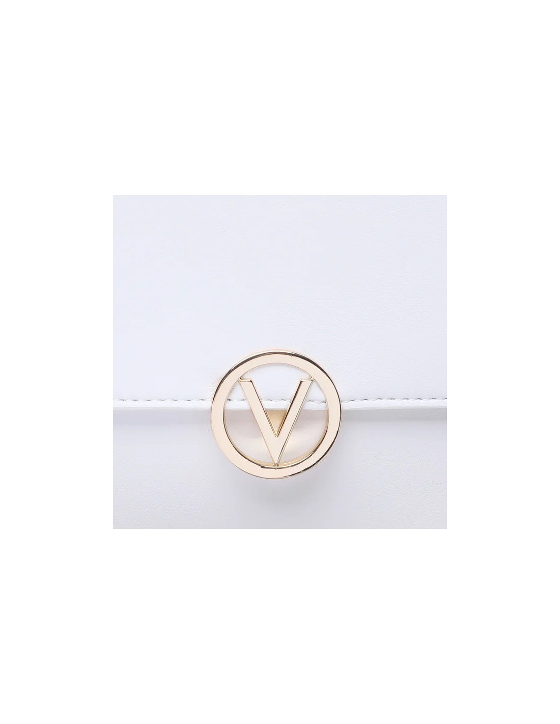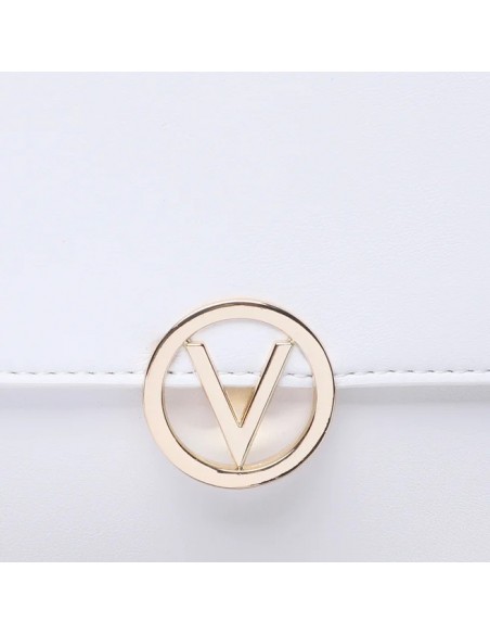 Obolso Valentino Bags Julyé feito em material sintético de cor branca e apresenta o logótipo metálico da marca sobre o seu fecho de aba.