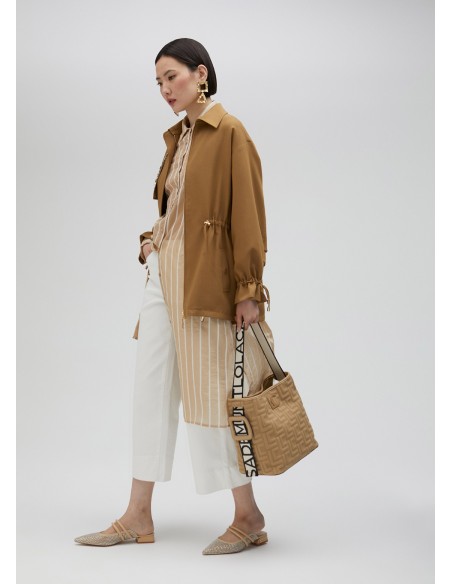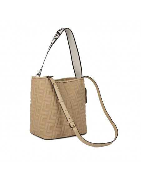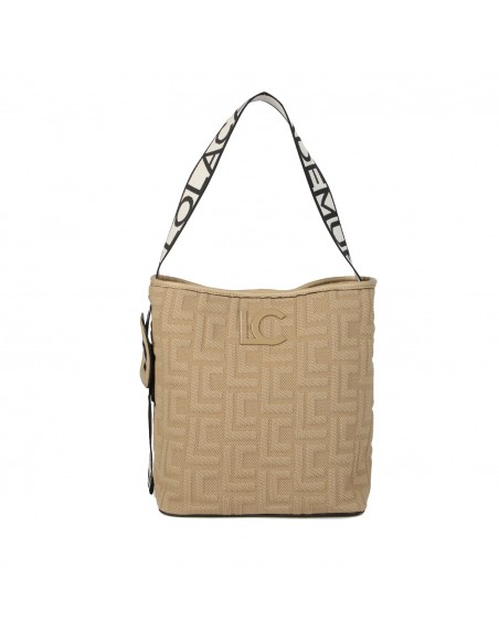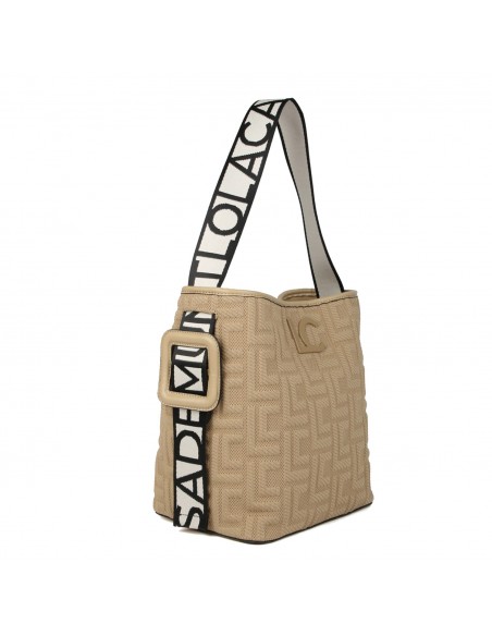 Fabricado em tecido monograma e com uma asa logotipada com fivela lateral, este bolso shopper da Lola Casademunt destaca-se pela sua elegância e estilo único.