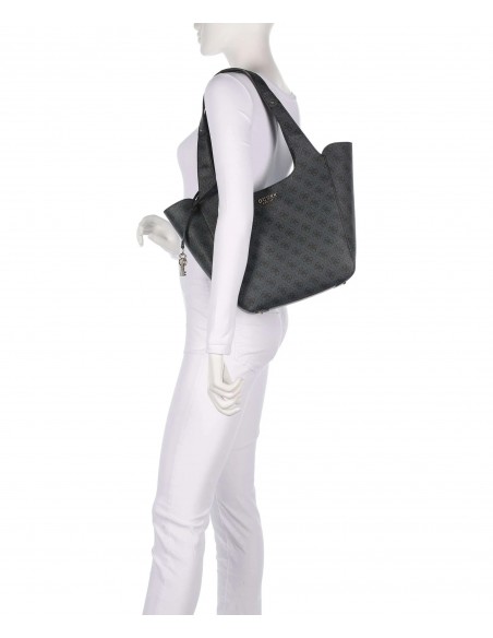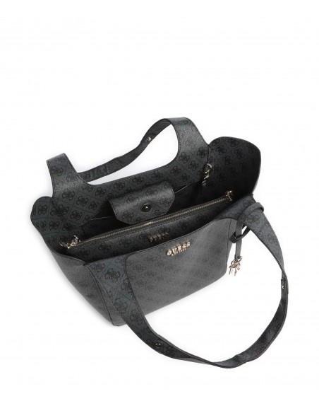 Bolso Shopper Guess Calista con Pochette Extraíble, Logo 4G, Antracita