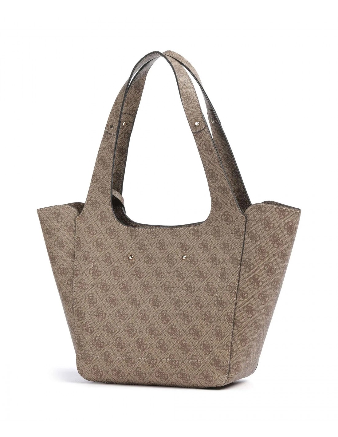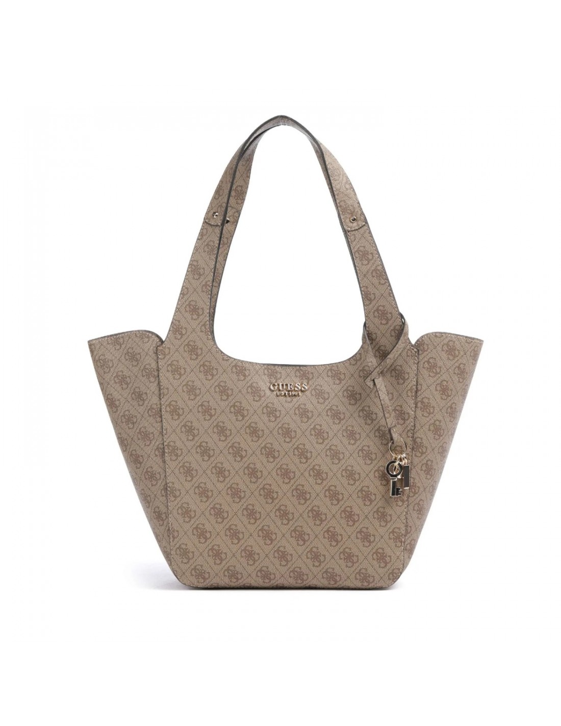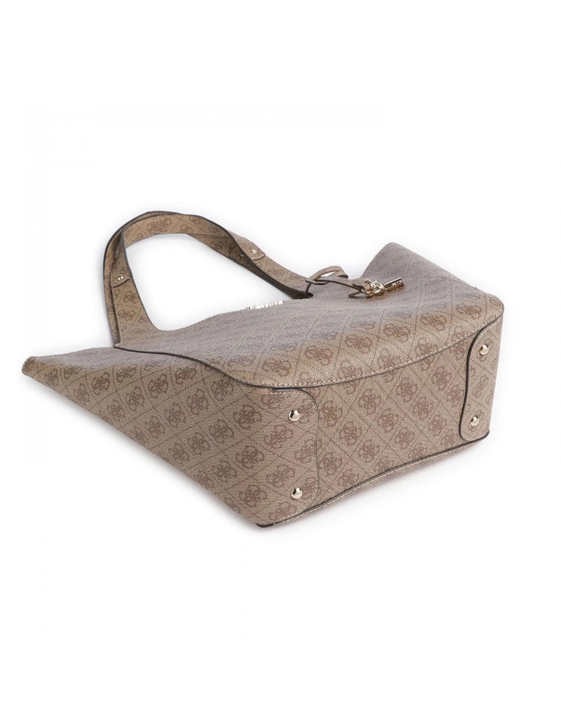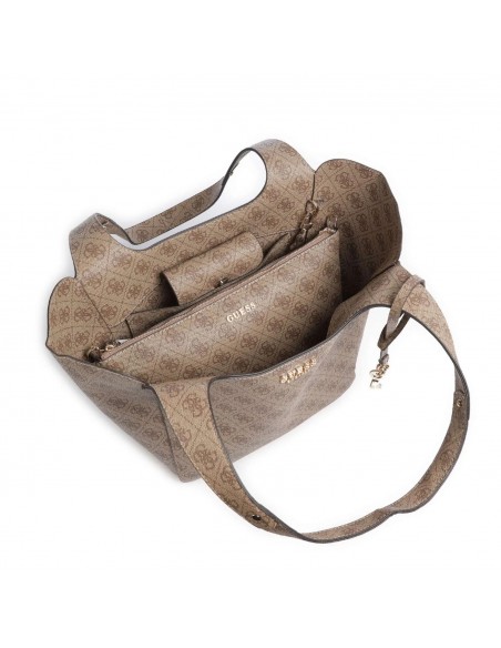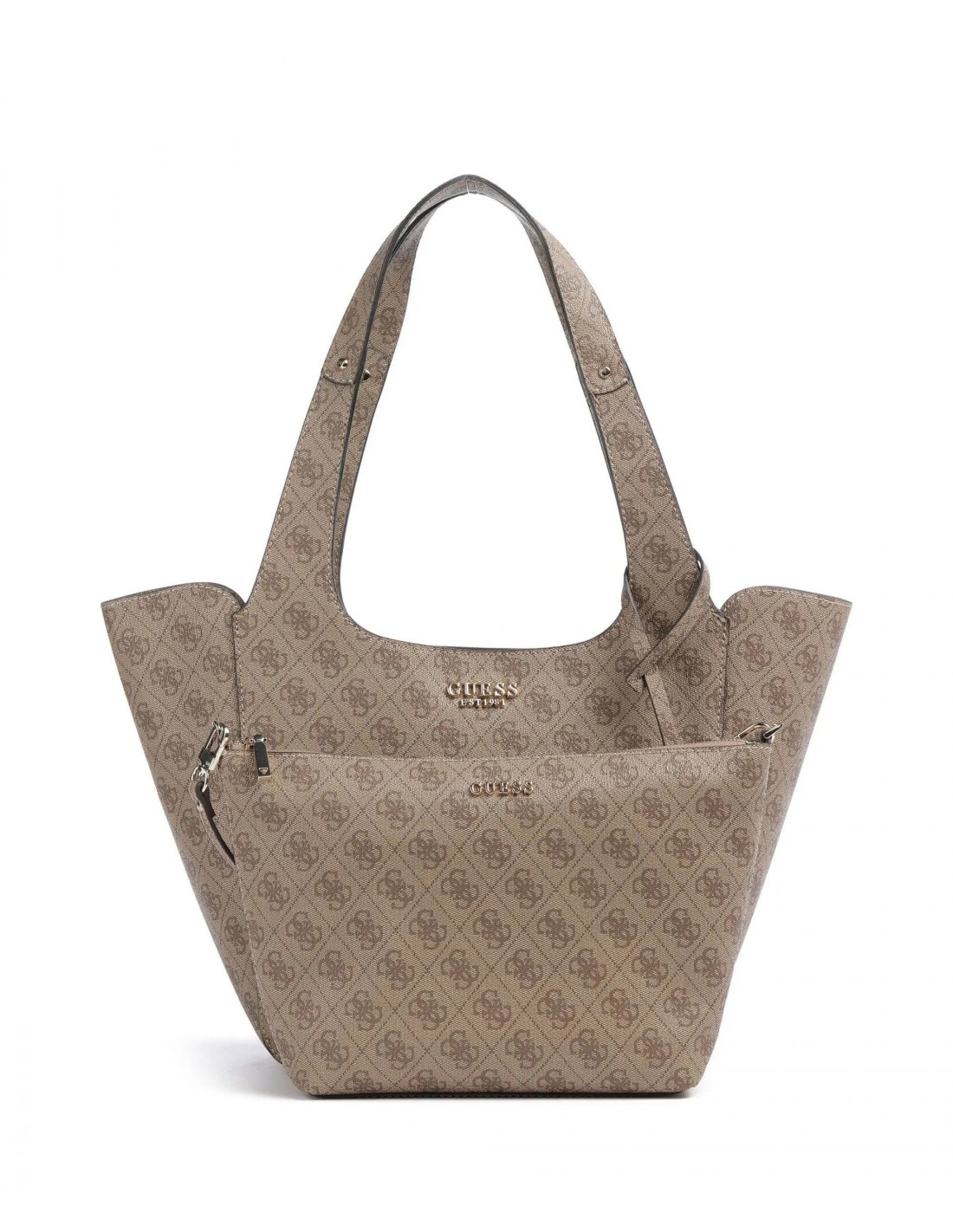 Bolso Shopper Guess Calista con Pochette Extraíble, Logo 4G, Latte