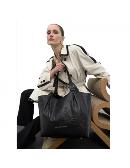 Bolso Shopper Lola Casademunt LC Monograma Pliegues, Negro