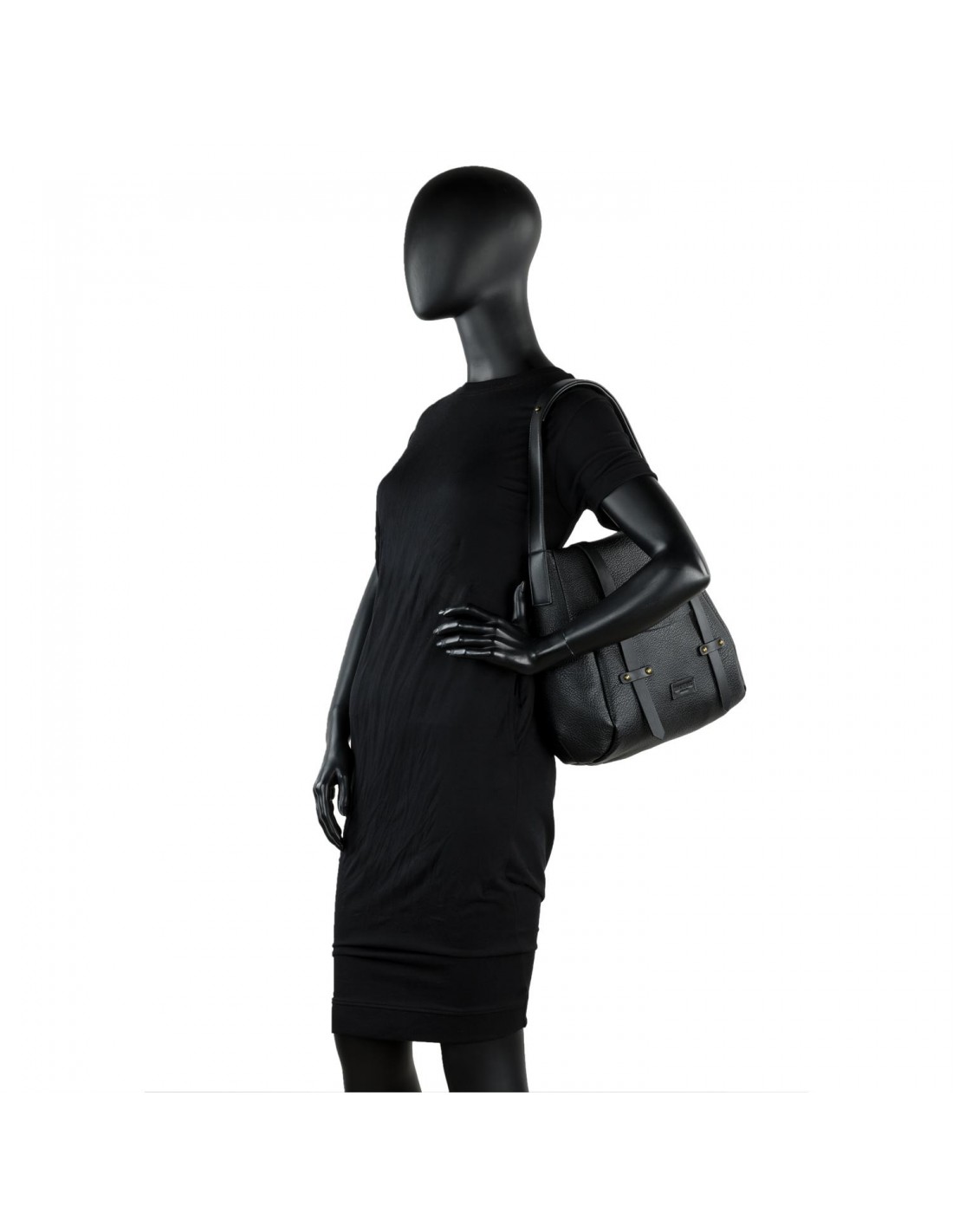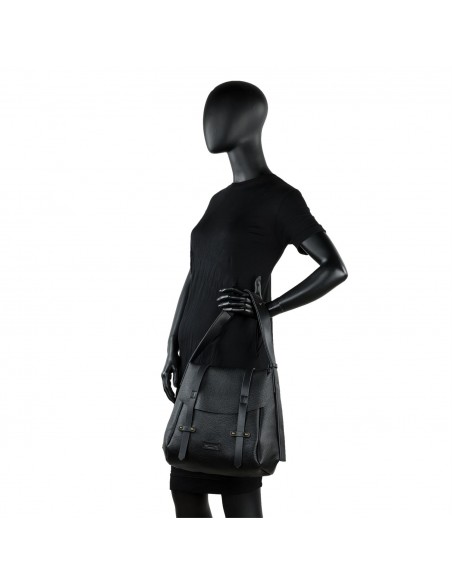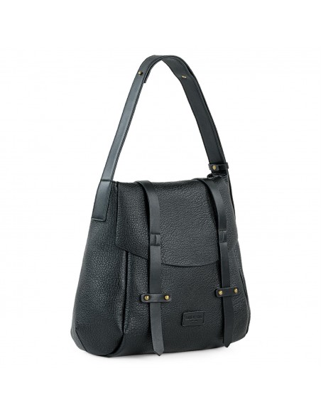 Bolso boho Lois Calgary para mulher apresenta um design com um toque casual, confeccionado em material sintético preto com textura ligeiramente rugosa combinado com liso.