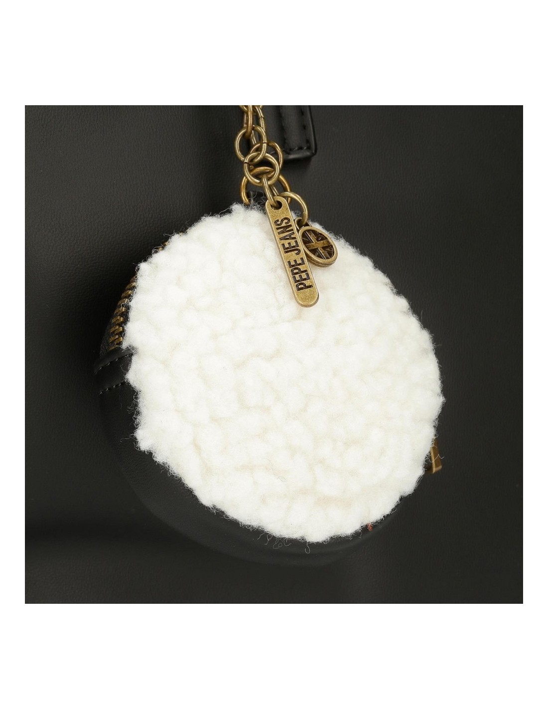 Logotipo da marca na parte frontal e prático porta-chaves e carteira.