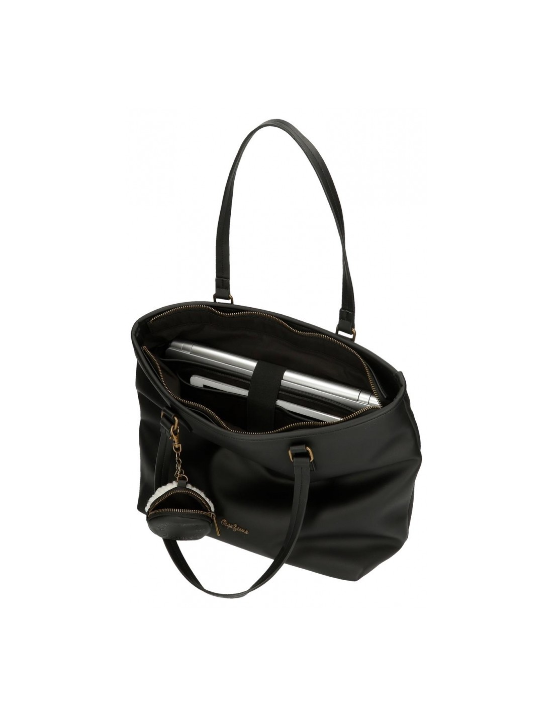 Pepe Jeans apresenta a sua bolsa estilo shopper Bianca confeccionada em material sintético cor preto com dupla alça de ombro.