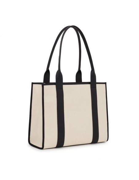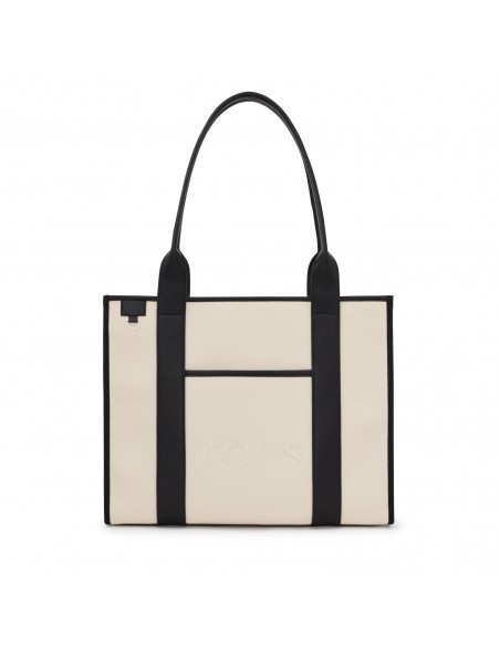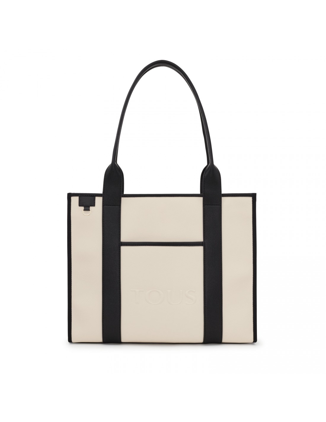 O bolso shopping Tous Amaya, La Rue está confeccionado em pele sintética com acabamento saffiano em tom beige com detalhes em contraste e logótipo da marca na frente.