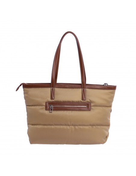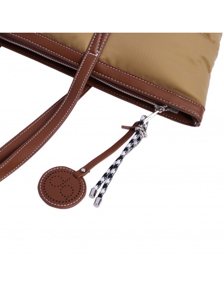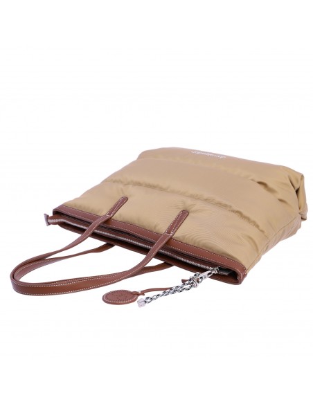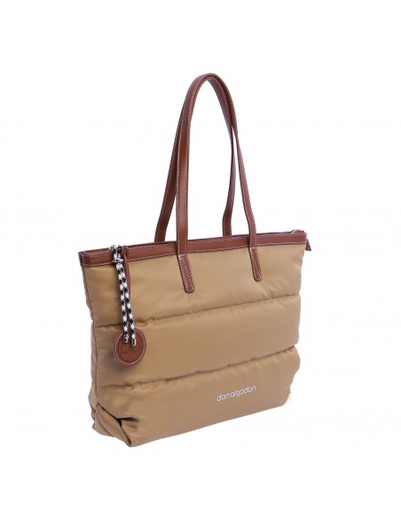 Confeccionada em nylon, a bolsa shopper don algodón Laureana apresenta um bonito design com pespontos horizontais que acolchoam a superfície, detalhes em PU em contraste e logotipo da marca em cor prata na parte frontal.