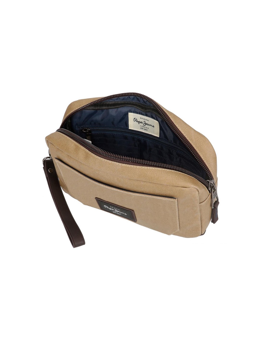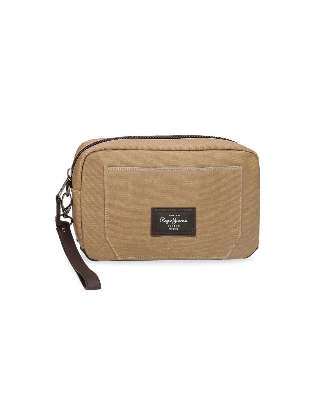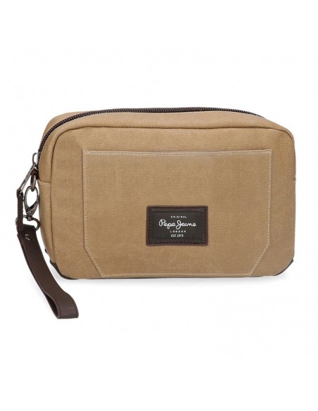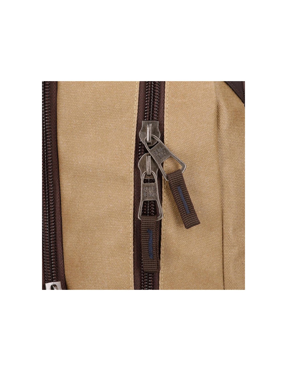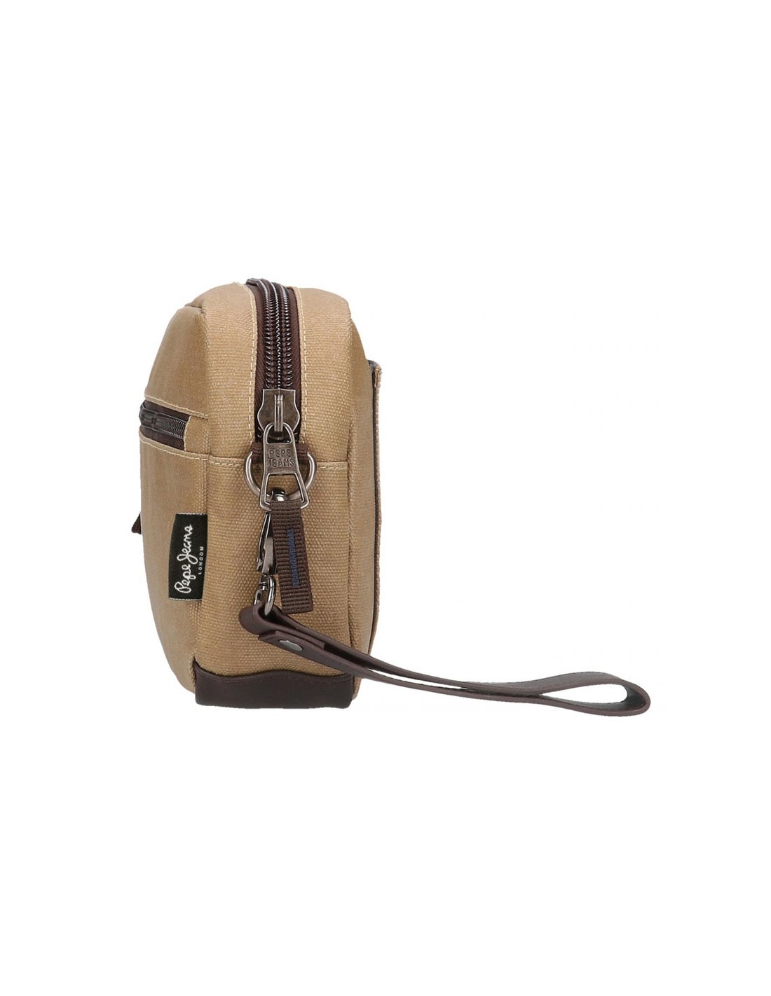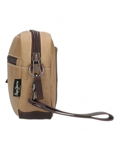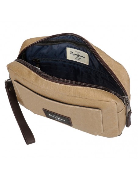 O mochila de mão de homem Jasp da Pepe Jeans é fabricada em material resistente de lona de algodão com detalhes em PU na cor caqui.