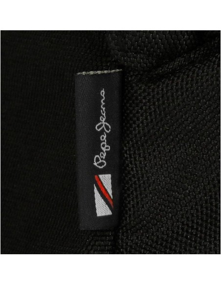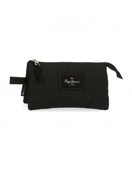 O estojo escolar Pepe Jeans Aris Evergreen é confeccionado em um poliéster resistente e durável com o logo da marca em um patch na frente.