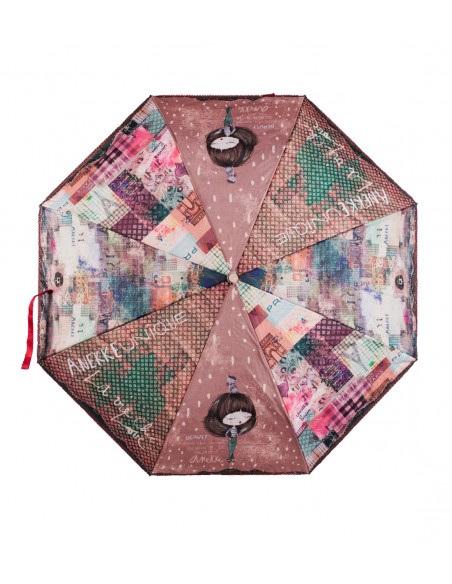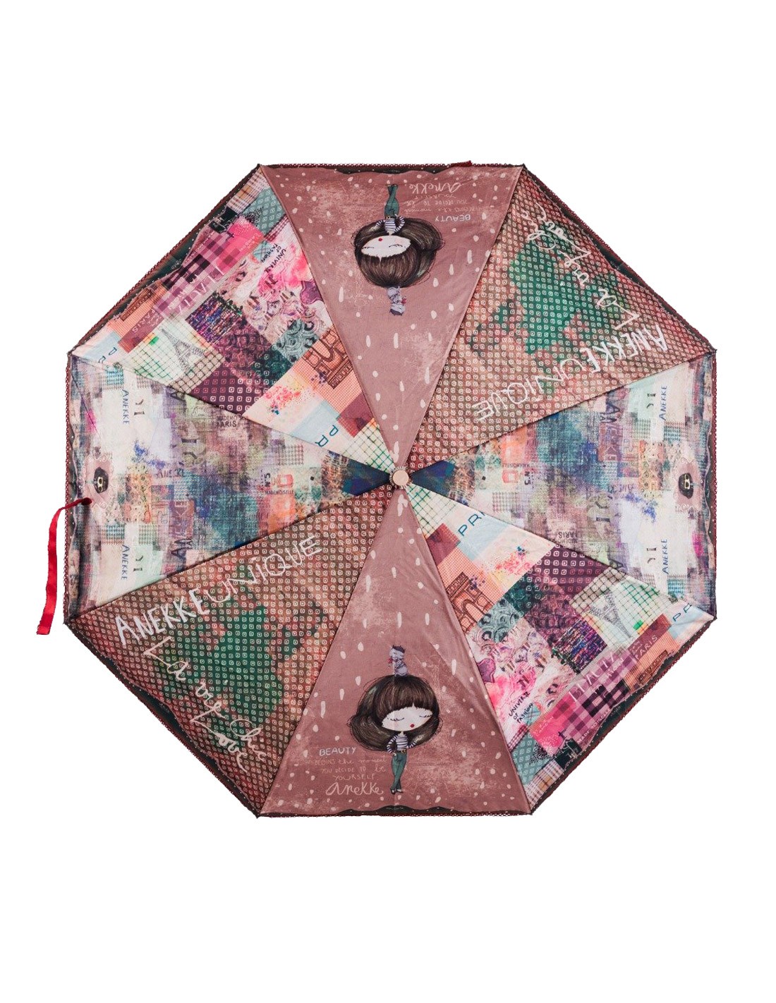 Este guarda-chuva de mulher Anekke com abertura automática através de botão, conta com uma estrutura de alumínio de 8 varetas, tecido de poliéster, cabo de plástico semicircular.