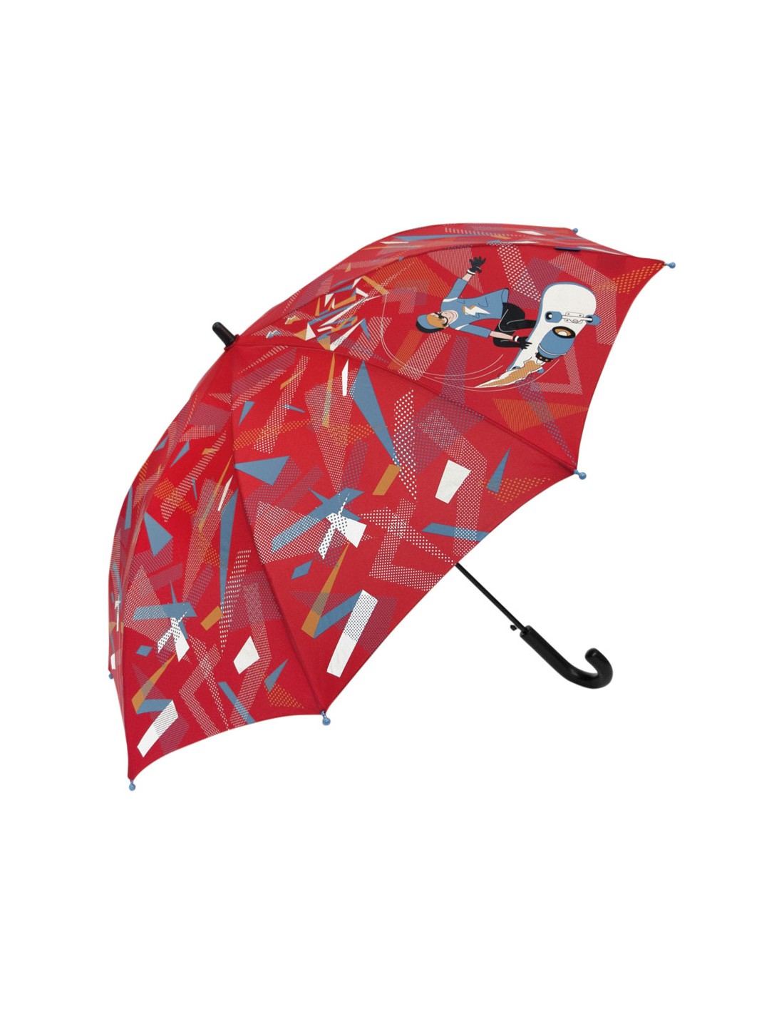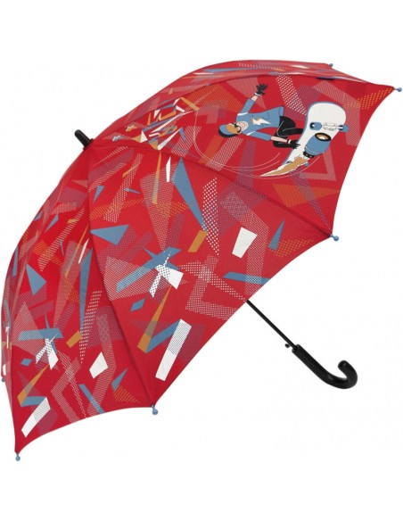 Guarda-chuva Clima Kids infantil Skate apresenta uma divertida cúpula estampada com um jovem a andar de skate sobre fundo vermelho que te encantará.
