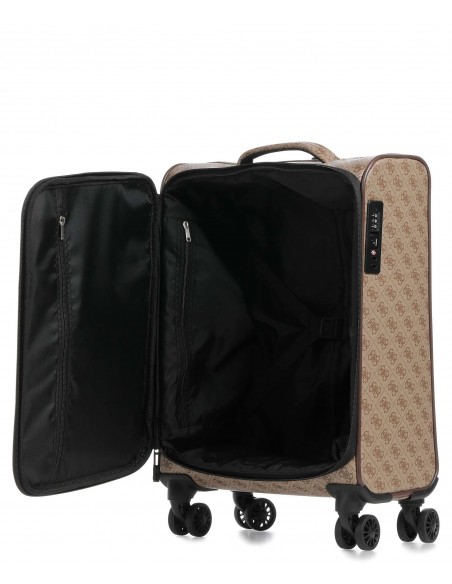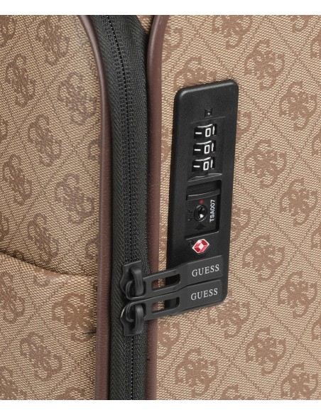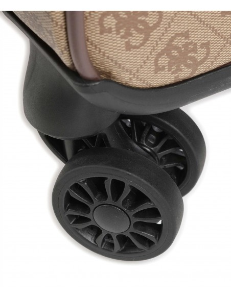 A mala de cabine Guess Vezzola é uma mala rígida com design integral logotipo 4g e logótipo na sua parte frontal.