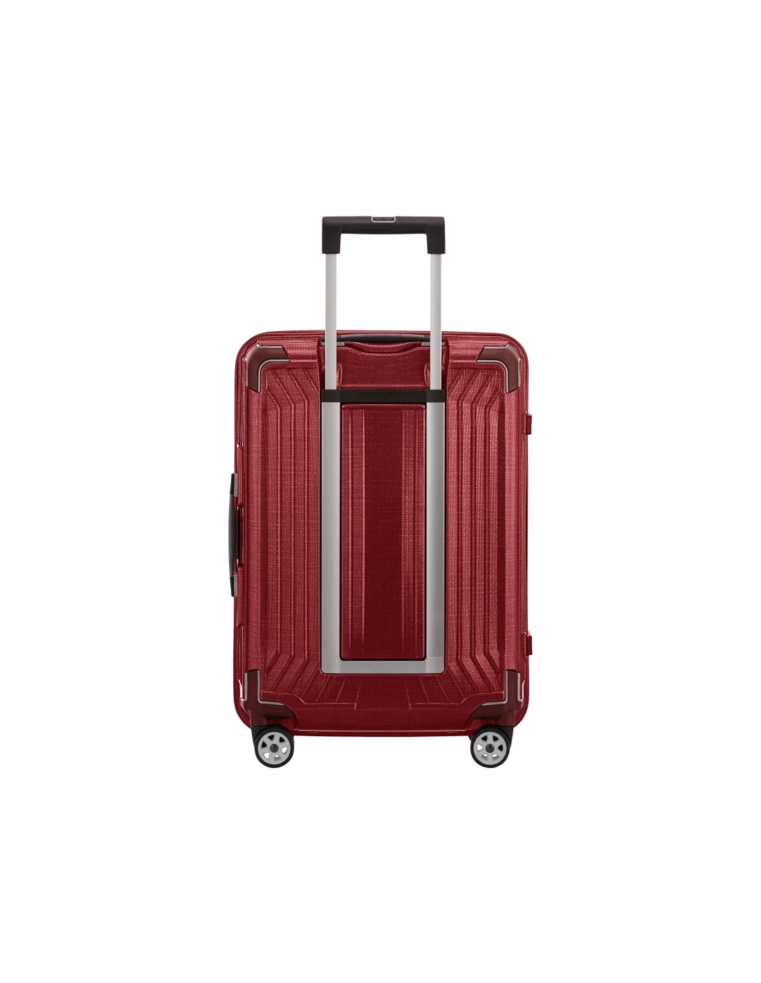 O equipamento Samsonite Lite-Box dispõe de puxador de duplo tubo e alças superior e lateral.