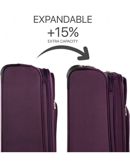 Trata-se de uma mala expandível que aumenta a sua capacidade quando é necessário mais espaço para bagagem ou presentes.