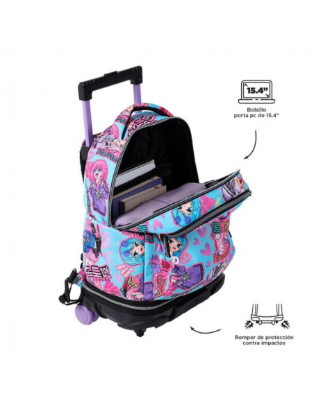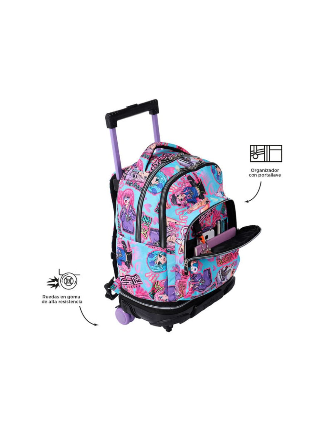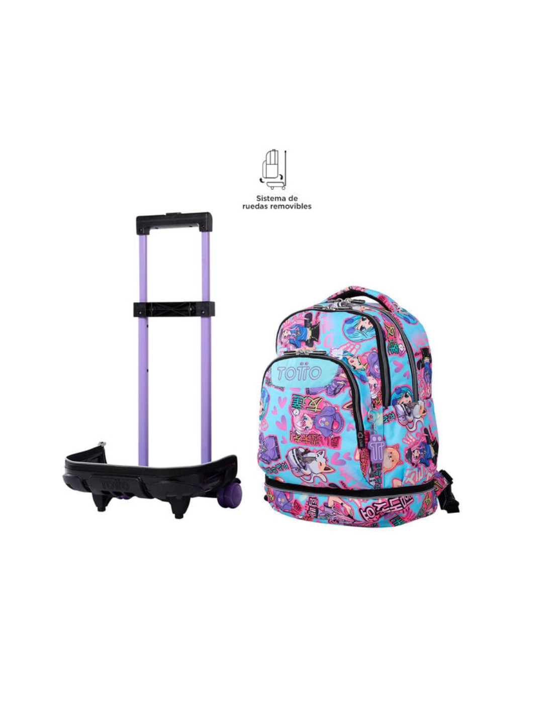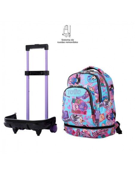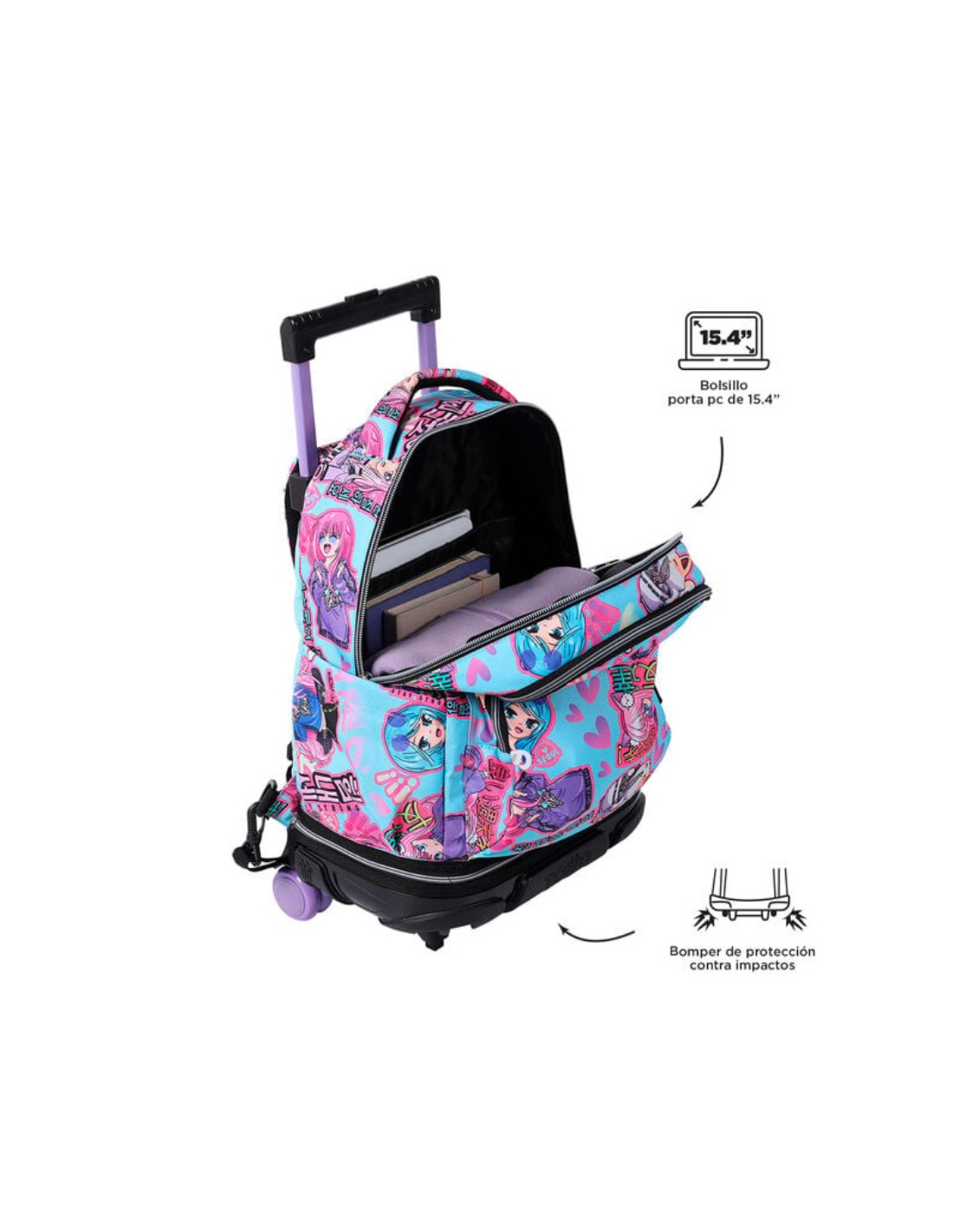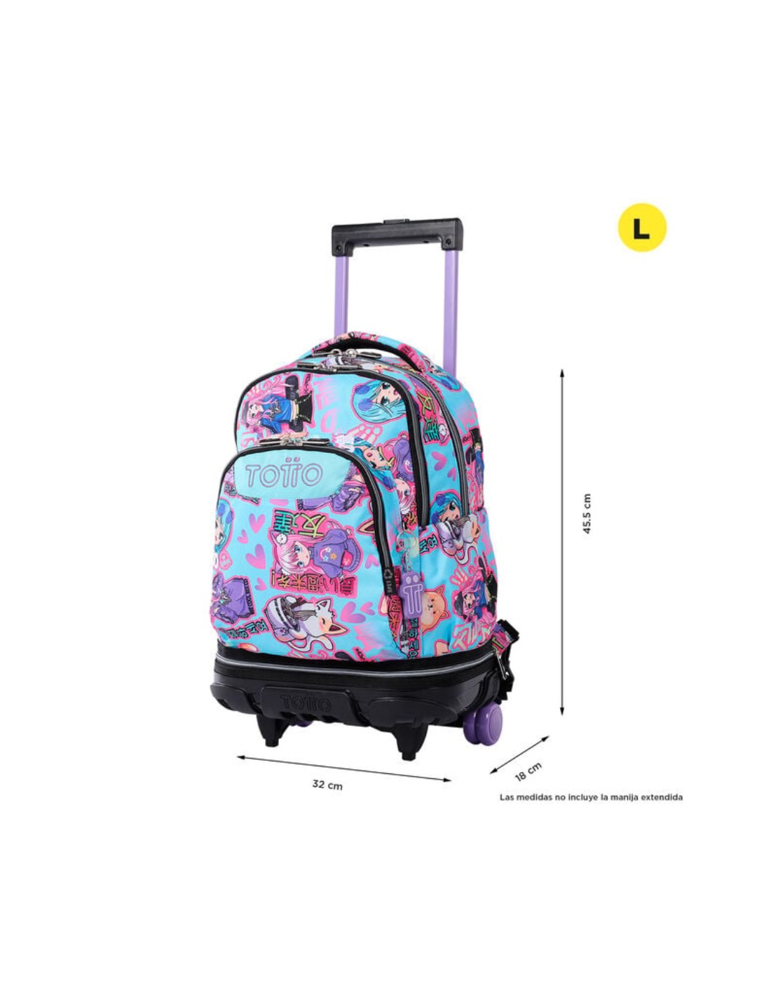 Confeccionada no seu exterior, a mochila escolar eco-friendly Totto Anime Girls - Tiza, 8J3 com 90% de poliéster reciclado apresenta um atraente estampado de raparigas anime.