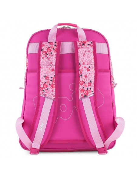 Possui dois amplos compartimentos grandes com fecho de zíper para transportar material escolar. Além disso, também dispõe de dois bolsos frontais com fecho de zíper.