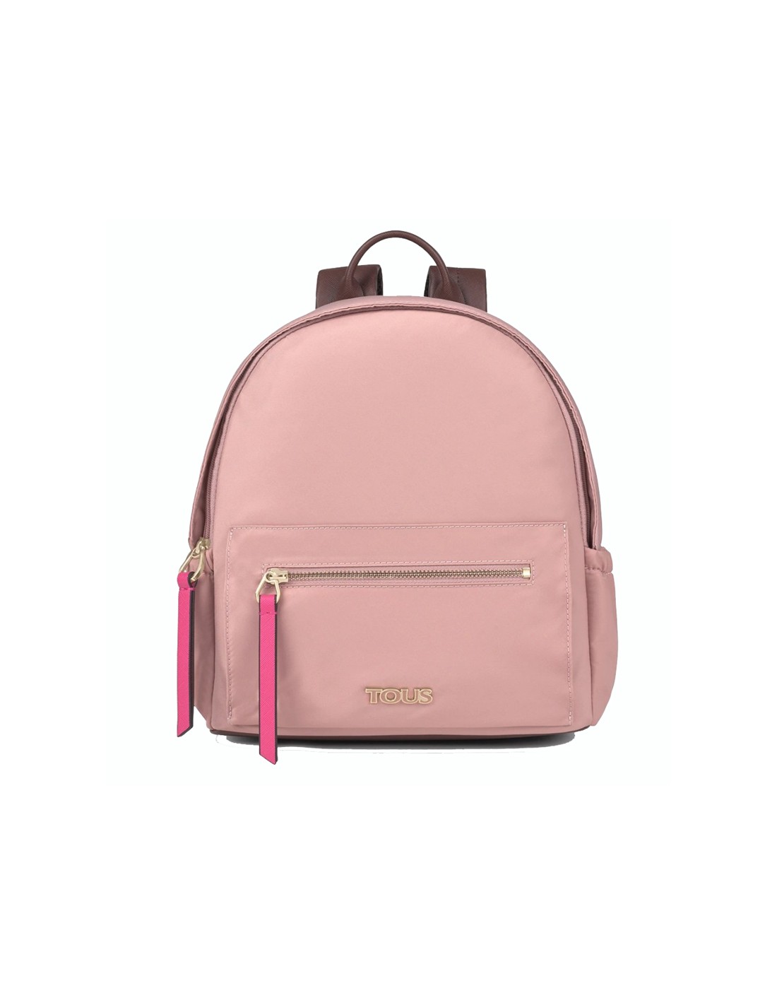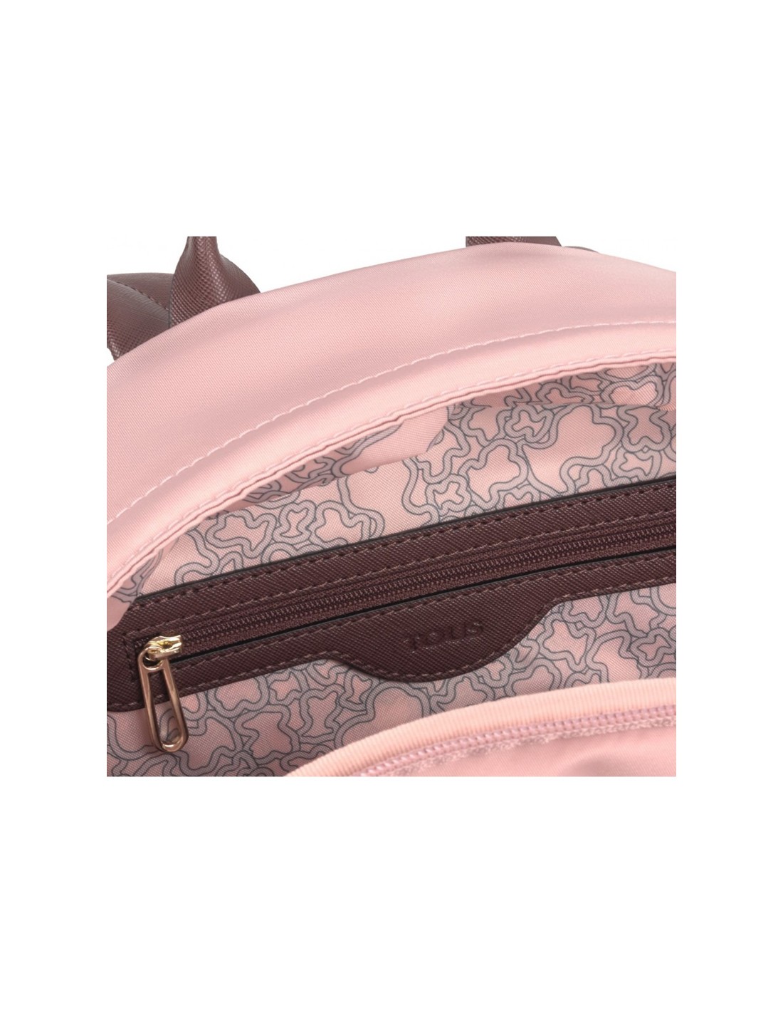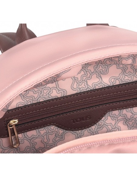A mochila Tous Shelby apresenta um design clássico e elegante em nylon rosa com apliques personalizados.