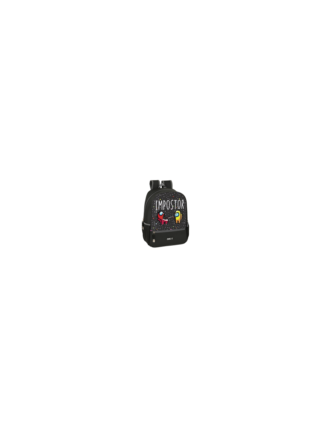Confecionada em poliéster, a mochila Impostor pertence à linha escolar dedicada ao videojogo de género party e multijogador online Among Us. No seu frontal, podemos ver alguns dos seus protagonistas.