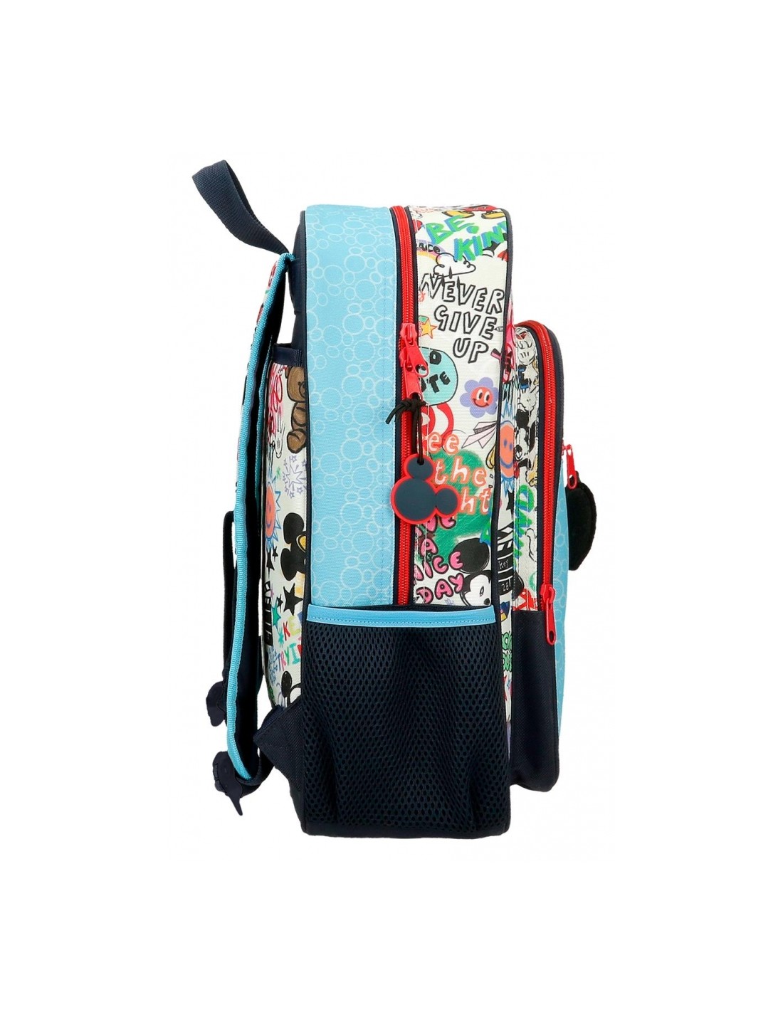 A mala escolar Disney Mickey Be Cool está cheia de detalhes coloridos e divertidos, e como protagonista no seu frontal temos o Mickey com as suas orelhinhas salientes. Fabricada em poliéster, em tons de azul, a mistura de cores inclui um pendente de borracha com a cabecinha do Mickey. Serás o mais Cool e moderno de todos!