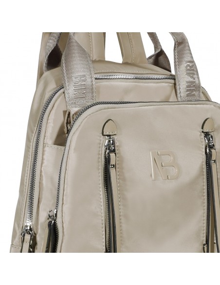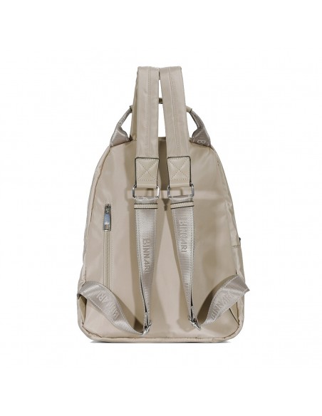 Confeccionada em nylon camelo, a mochila Binnari Pombal apresenta detalhes em pele sintética e detalhes metálicos na cor níquel.