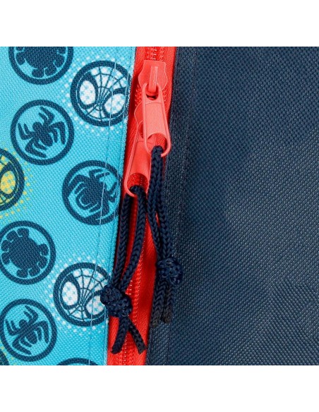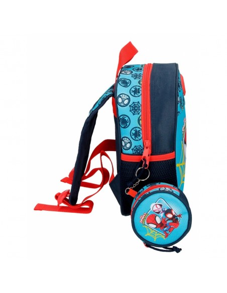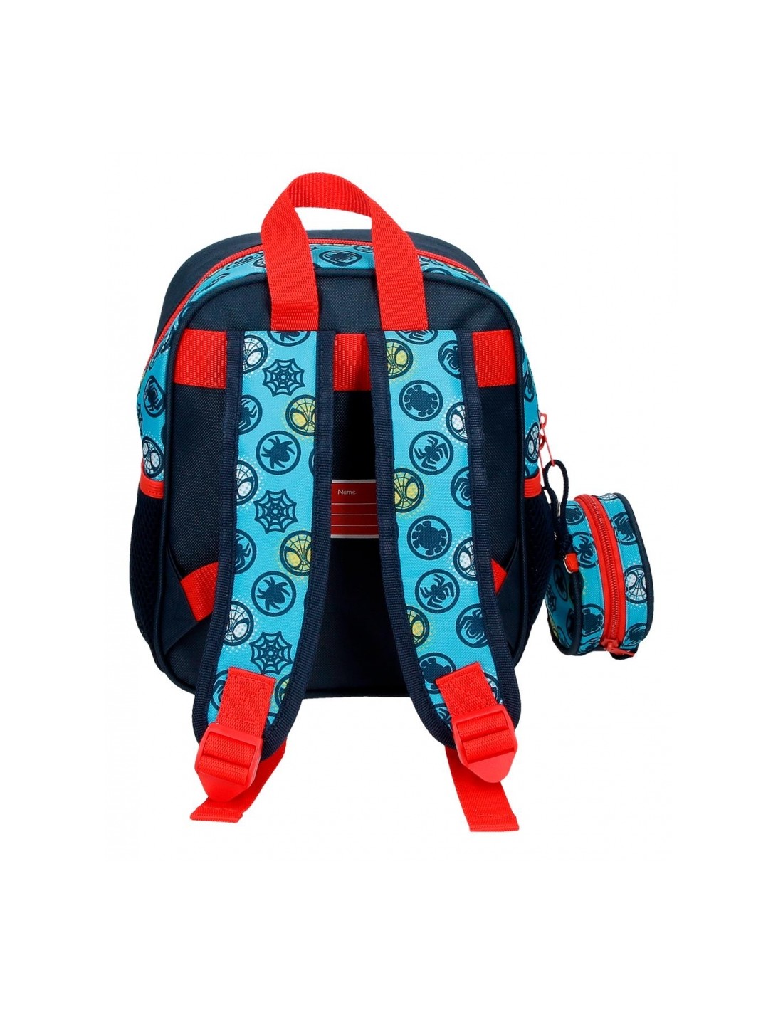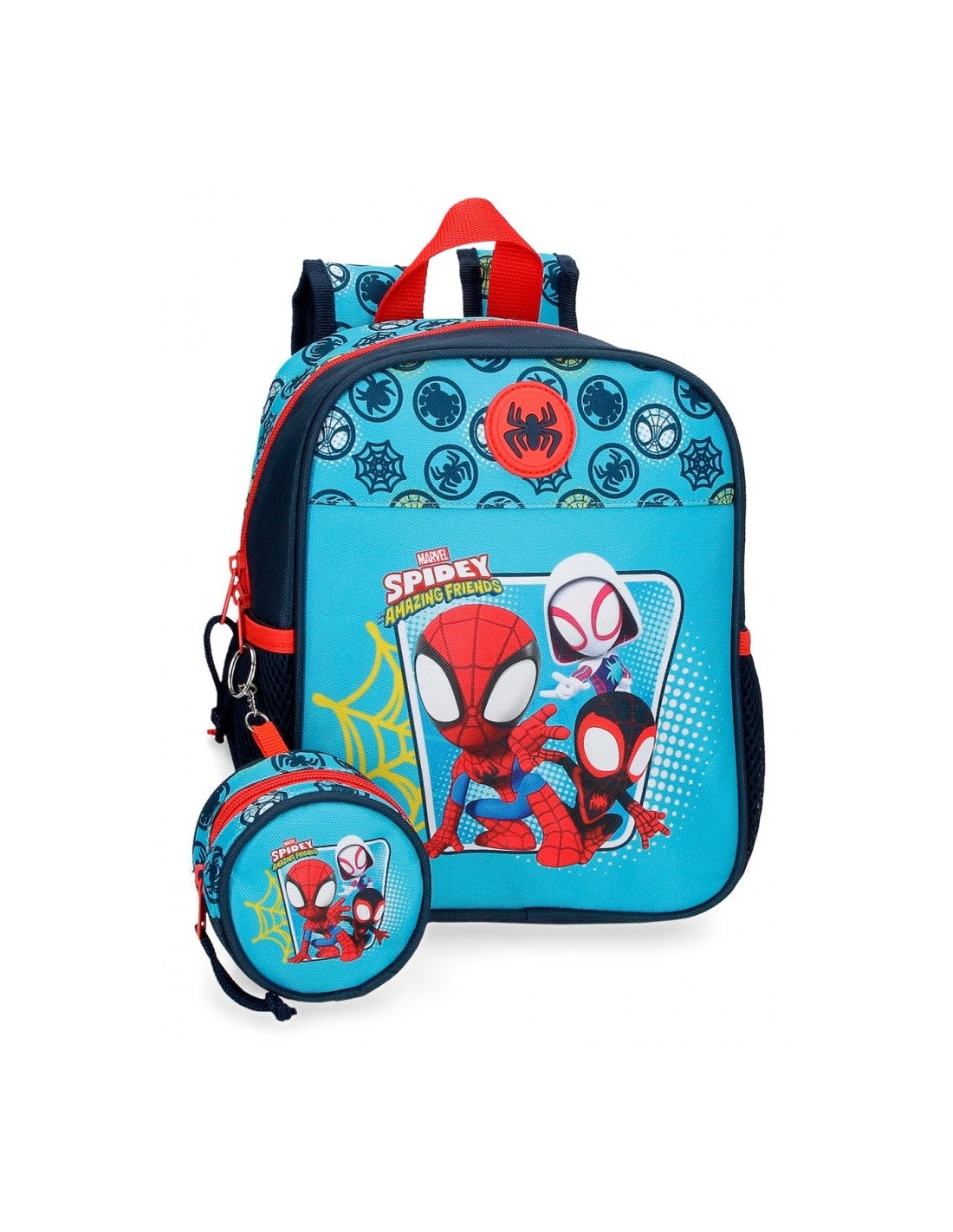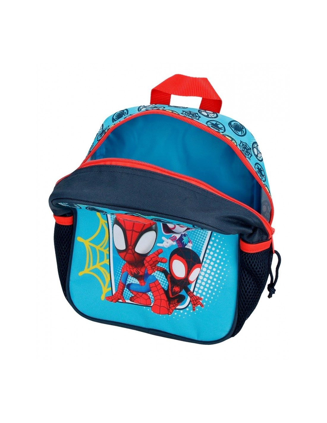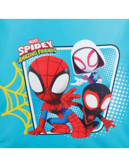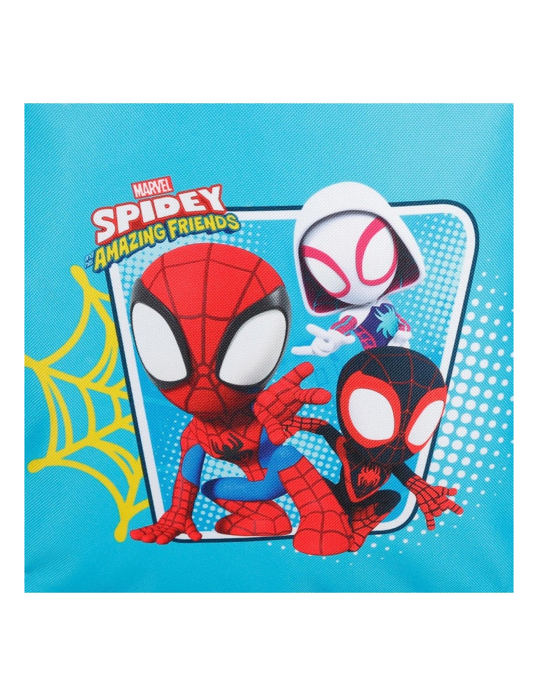 A mochila de jardim Marvel Spidey Team Up apresenta um frontal estampado com a divertida versão infantil do Spiderman, Spidey e a sua super equipa de amigos, Ghost Spider e Miles.