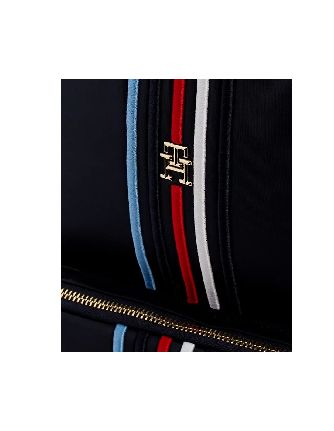 Insígnia do monograma TH na parte frontal, entre outros detalhes distintivos de Tommy Hilfiger.