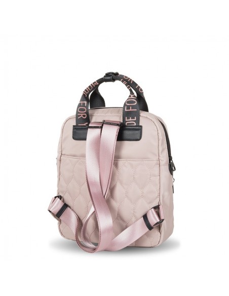Confeccionada em nylon nude, a mochila Ventis apresenta um bonito design acolchoado com pesponto na mesma tonalidade.
