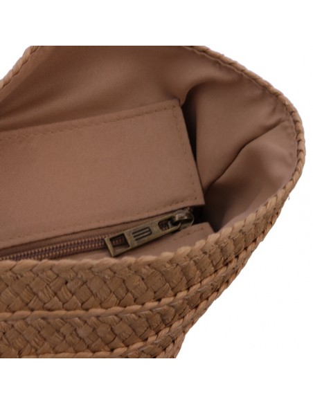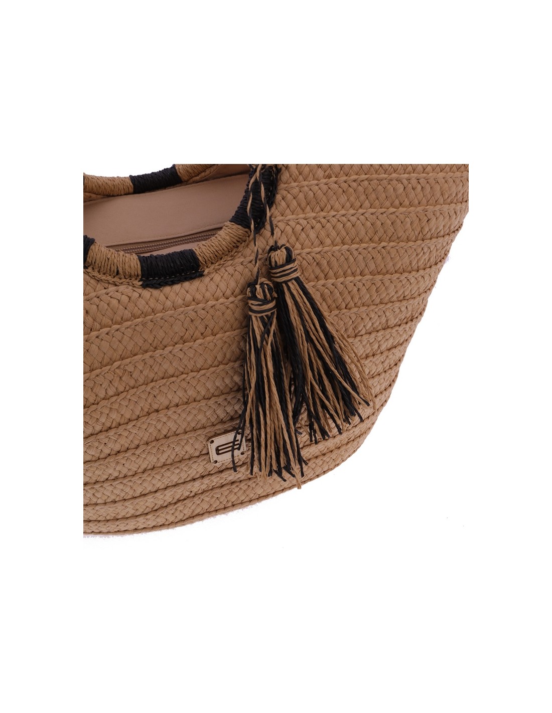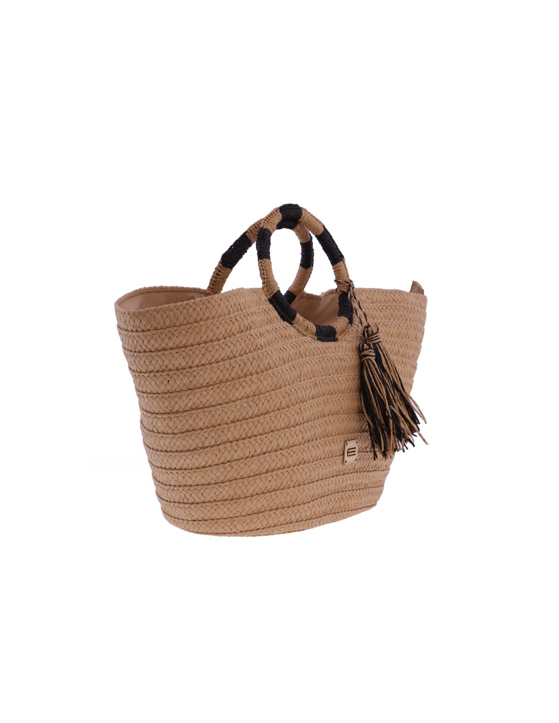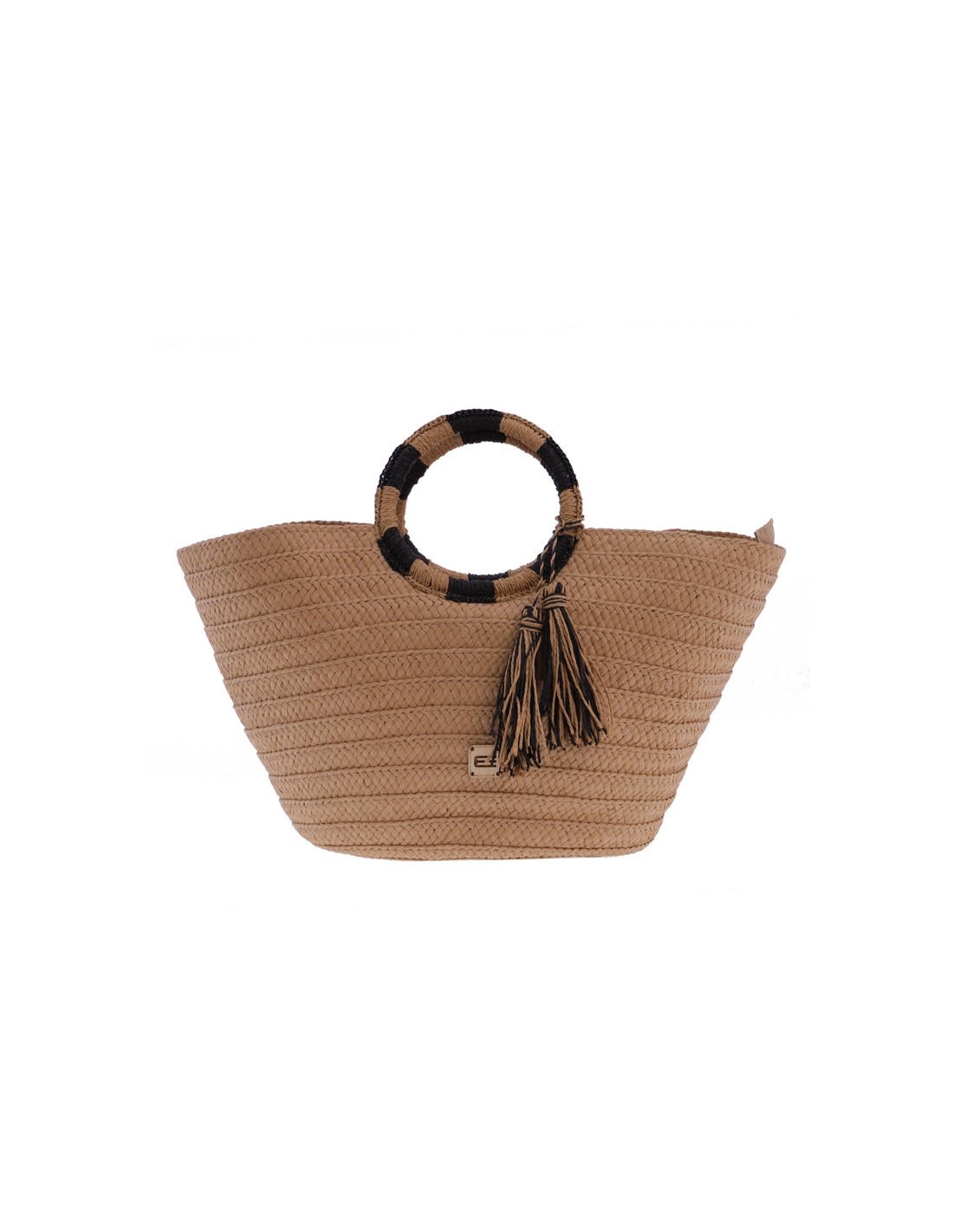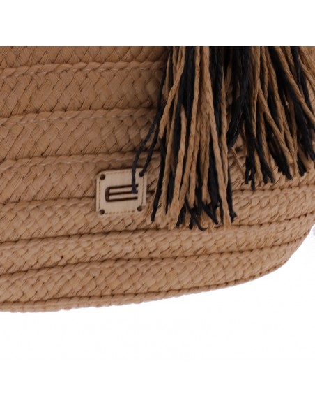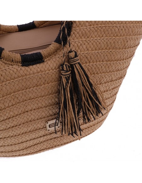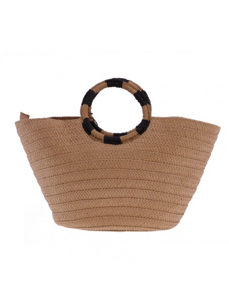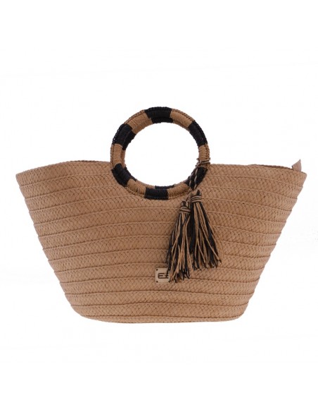 O cabazinho de praia Akina EFerri feito em ráfia trançada na cor bege com lindas alças em forma de aro bicolor.